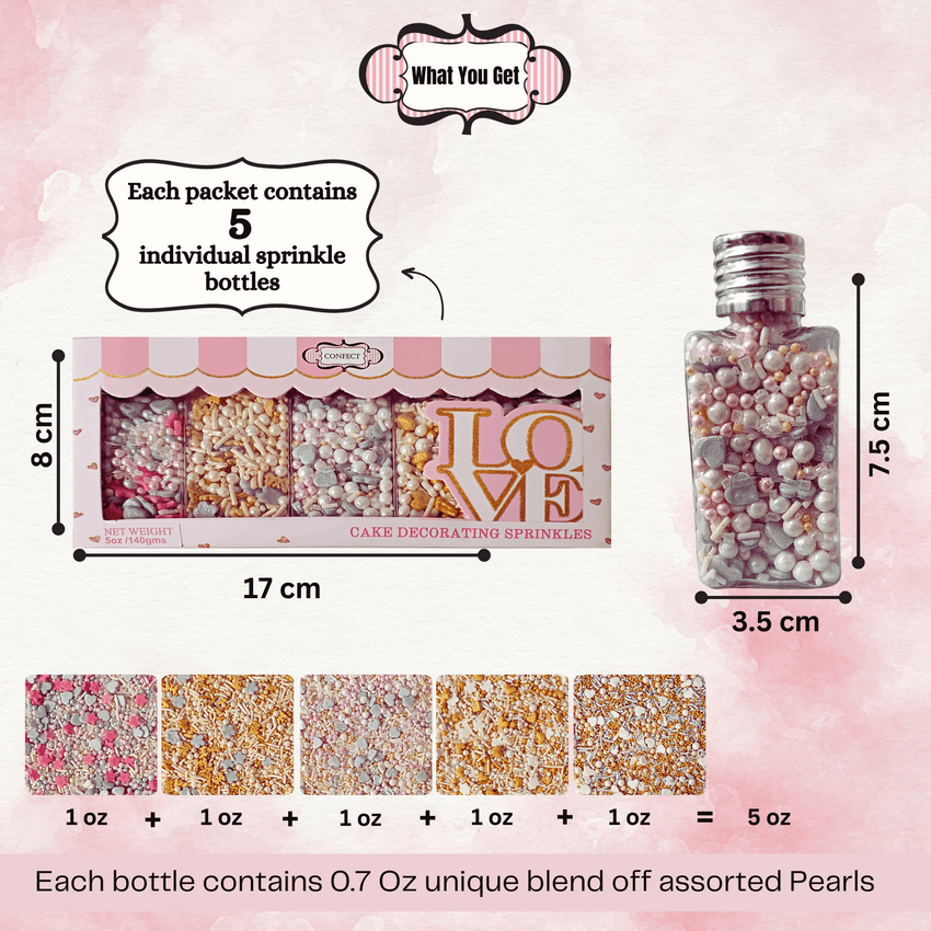 Valentine Sprinkles | 19 Edible Decoration for Baking & Dessert 100 Gms