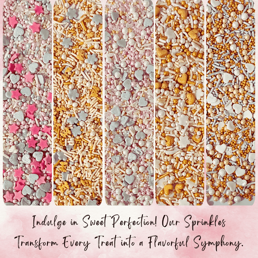 A delightful collection of shiny, crunchy, and colorful sprinkles that turn ordinary bakes into showstoppers.