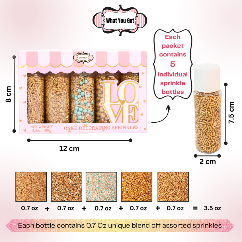 Perfect for decorating birthday cakes, festive treats, and everyday bakes. These 100% vegetarian sprinkles add crunch, color, and sparkle with a mix of textures – from metallic shine to sugary crunch.