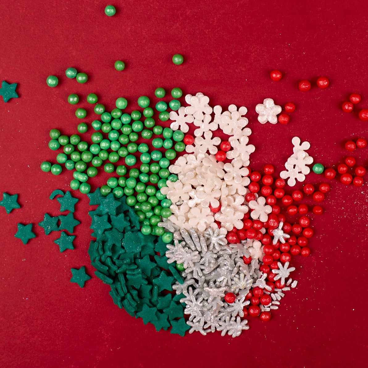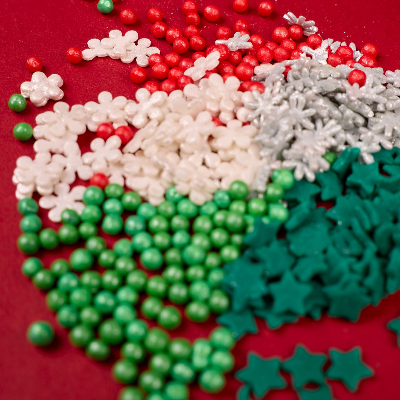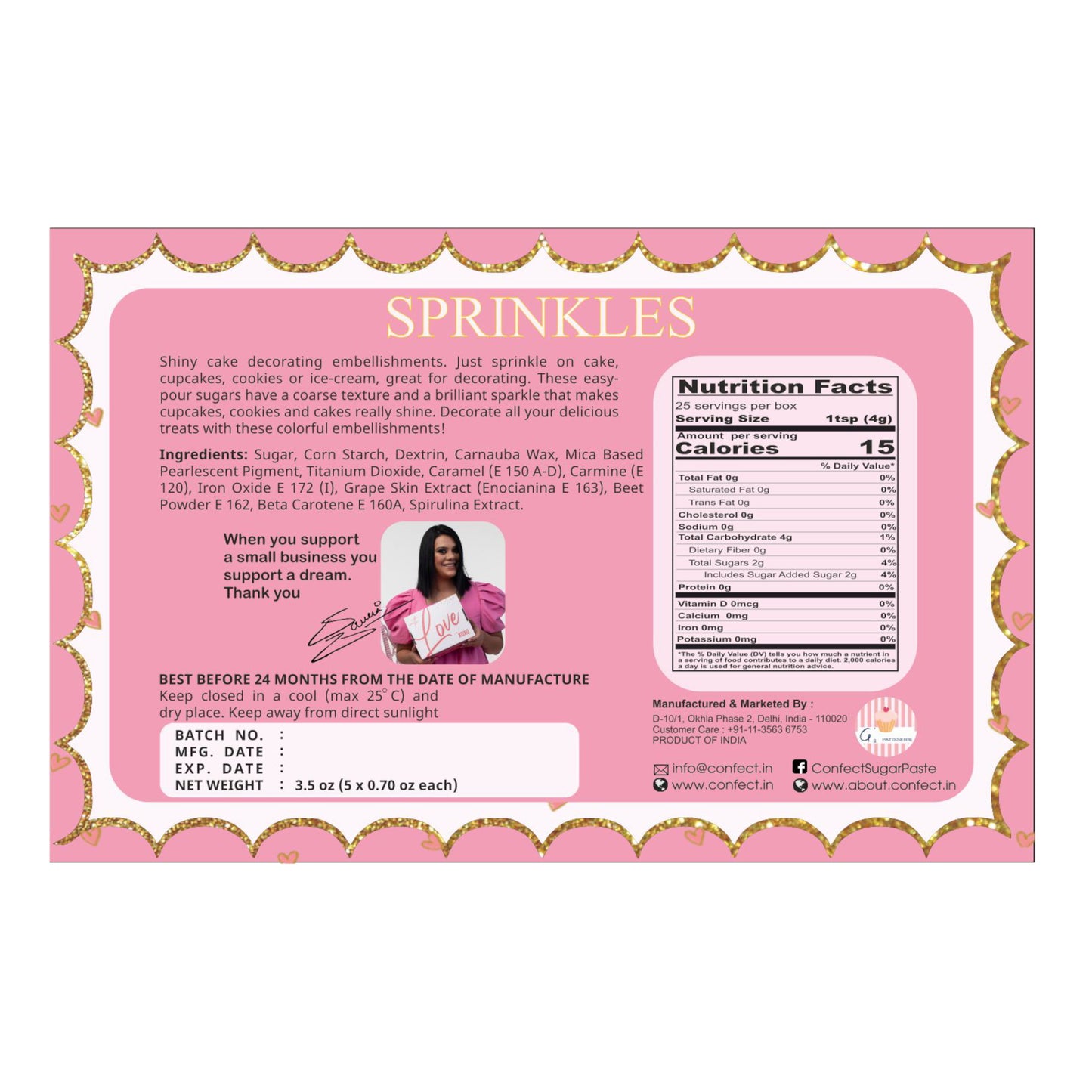 Perfect for decorating birthday cakes, festive treats, and everyday bakes. These 100% vegetarian sprinkles add crunch, color, and sparkle with a mix of textures – from metallic shine to sugary crunch.
