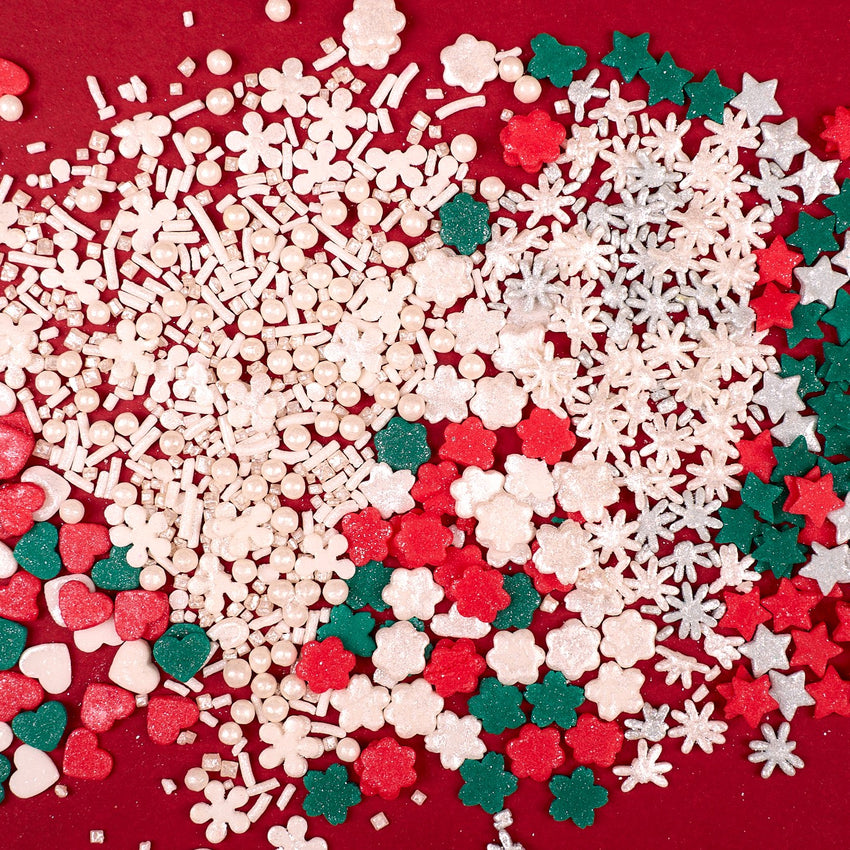 Perfect for decorating birthday cakes, festive treats, and everyday bakes. These 100% vegetarian sprinkles add crunch, color, and sparkle with a mix of textures – from metallic shine to sugary crunch.