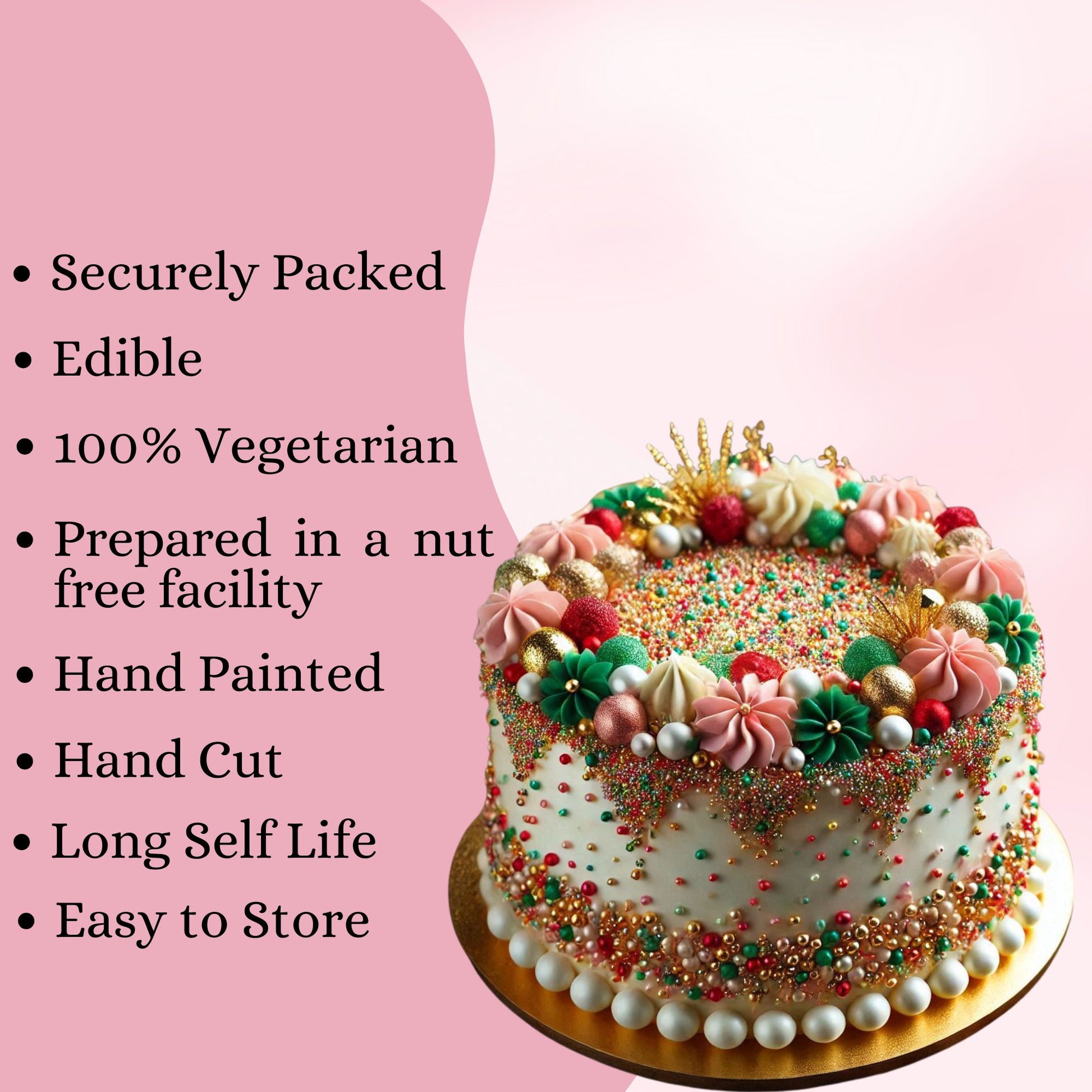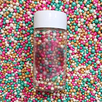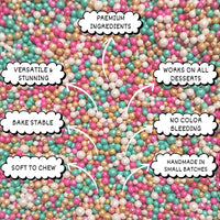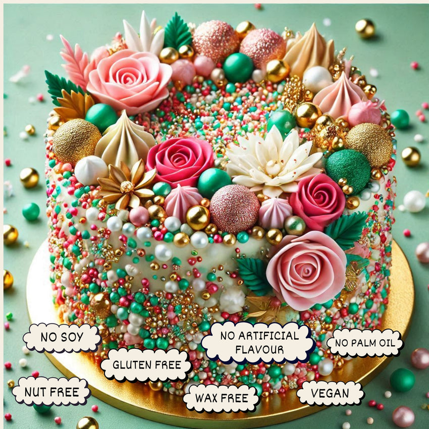 Perfect for decorating birthday cakes, festive treats, and everyday bakes. These 100% vegetarian sprinkles add crunch, color, and sparkle with a mix of textures – from metallic shine to sugary crunch.