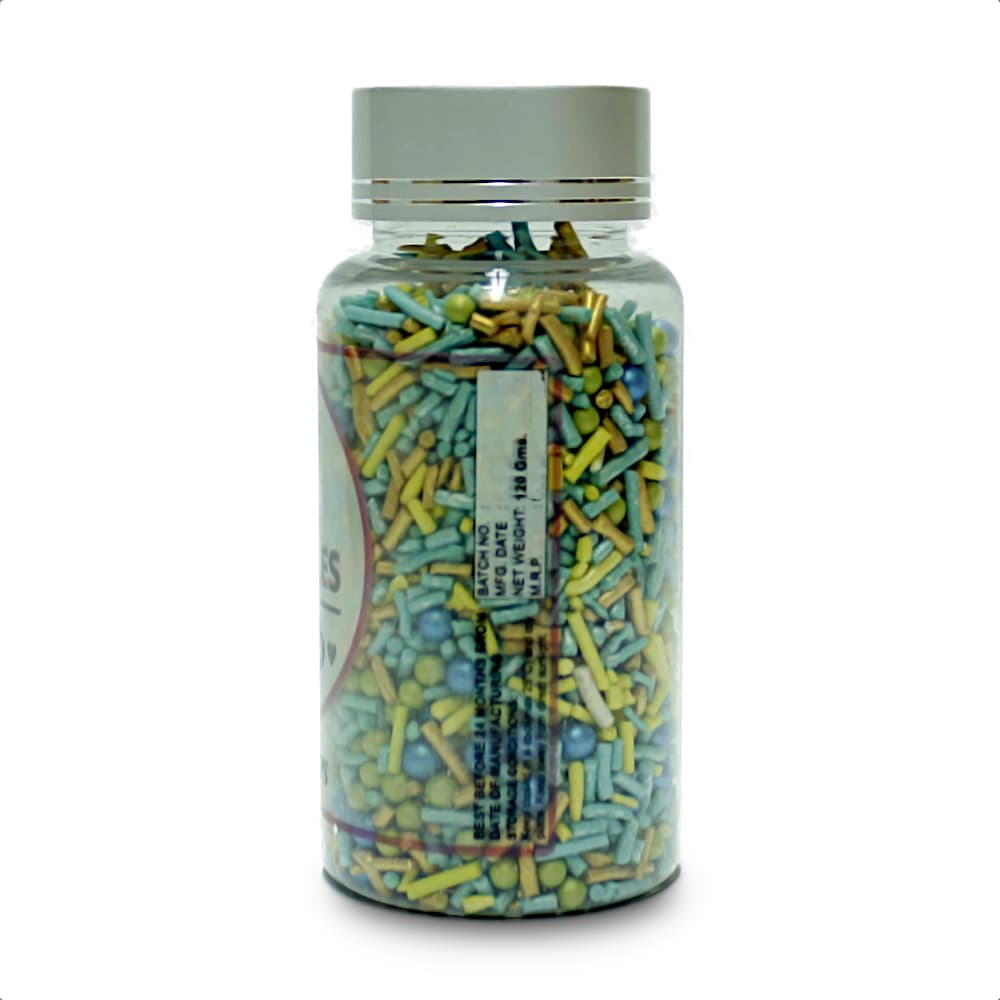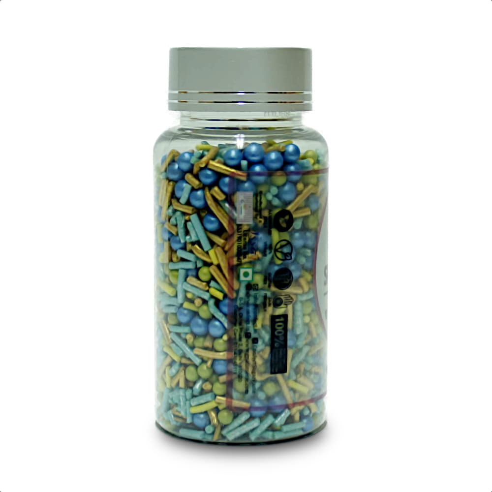 Perfect for decorating birthday cakes, festive treats, and everyday bakes. These 100% vegetarian sprinkles add crunch, color, and sparkle with a mix of textures – from metallic shine to sugary crunch.