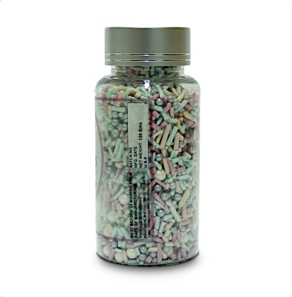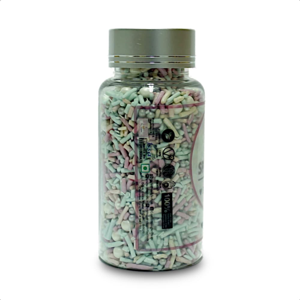 Perfect for decorating birthday cakes, festive treats, and everyday bakes. These 100% vegetarian sprinkles add crunch, color, and sparkle with a mix of textures – from metallic shine to sugary crunch.