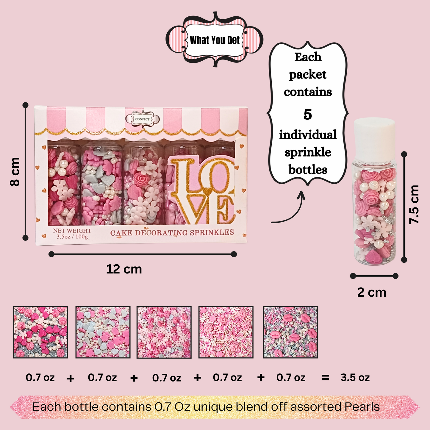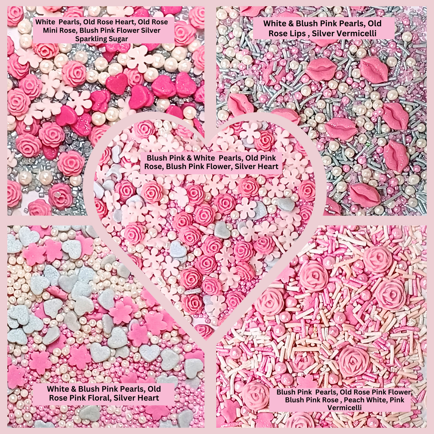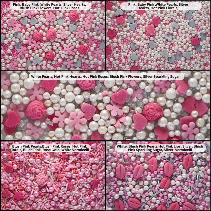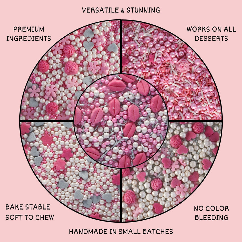 Silver Hearts & White Pearls | Edible Mother's Day Sprinkles