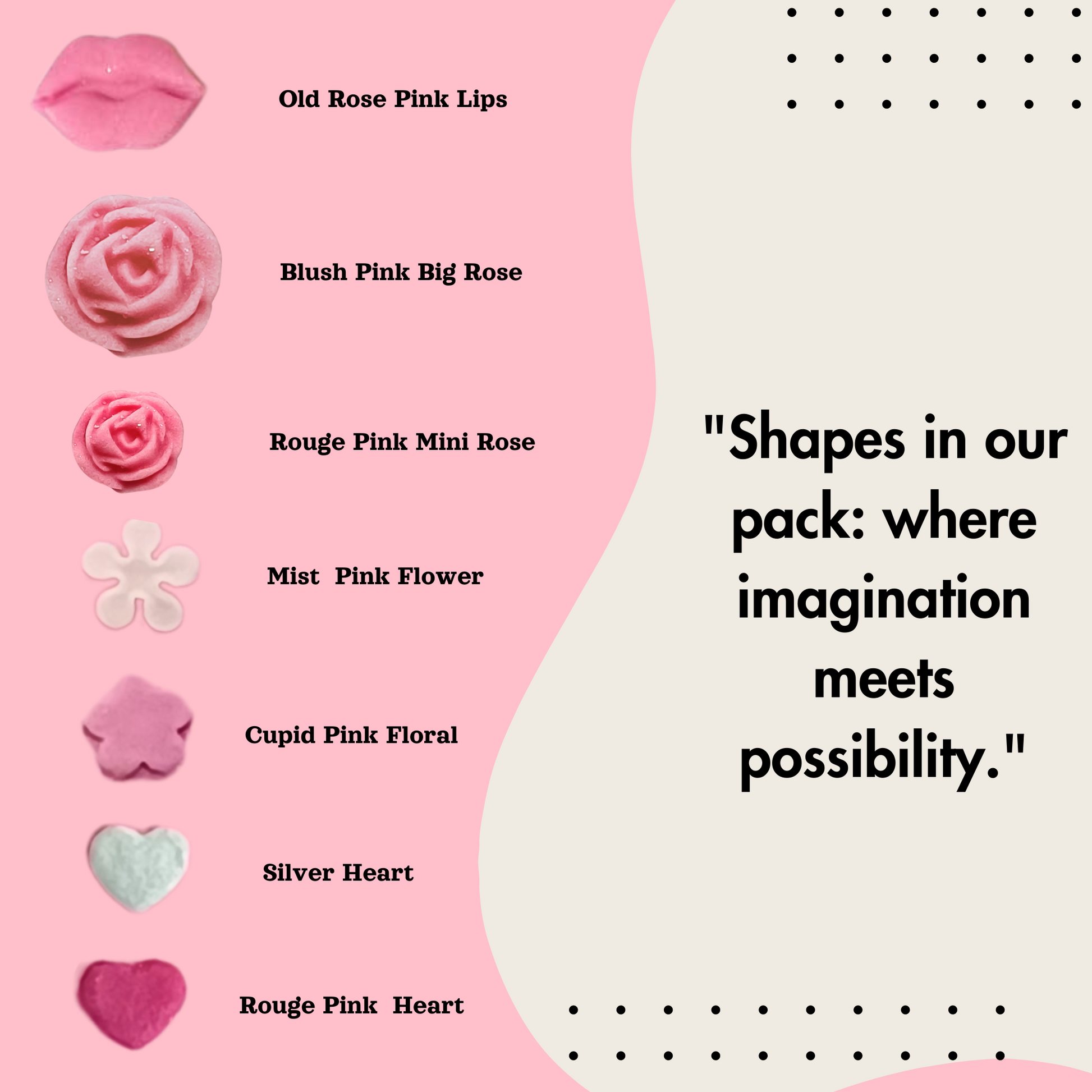 Sugar, Glucose Syrup, Corn Starch, Cocoa Solids, Food-Grade Colors & Flavours, Vegetable Shortening, Gum Arabic, Permitted Additives.