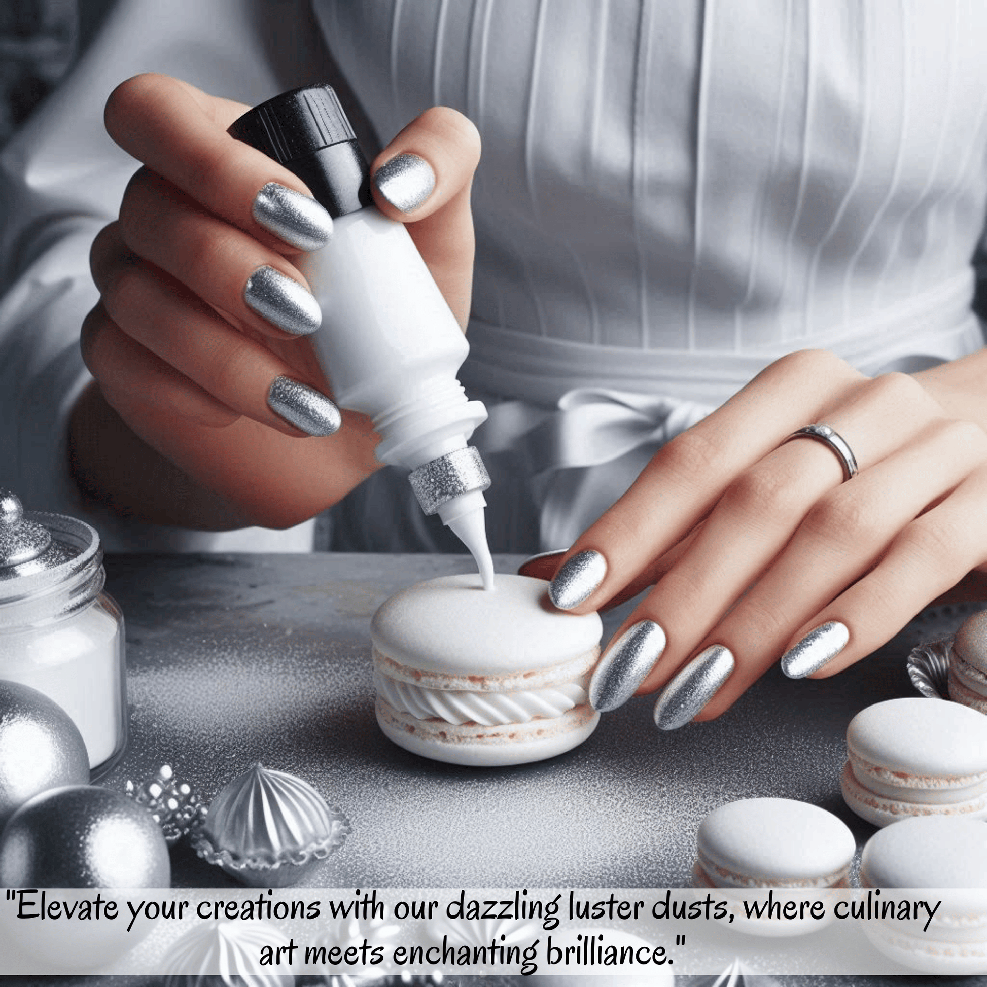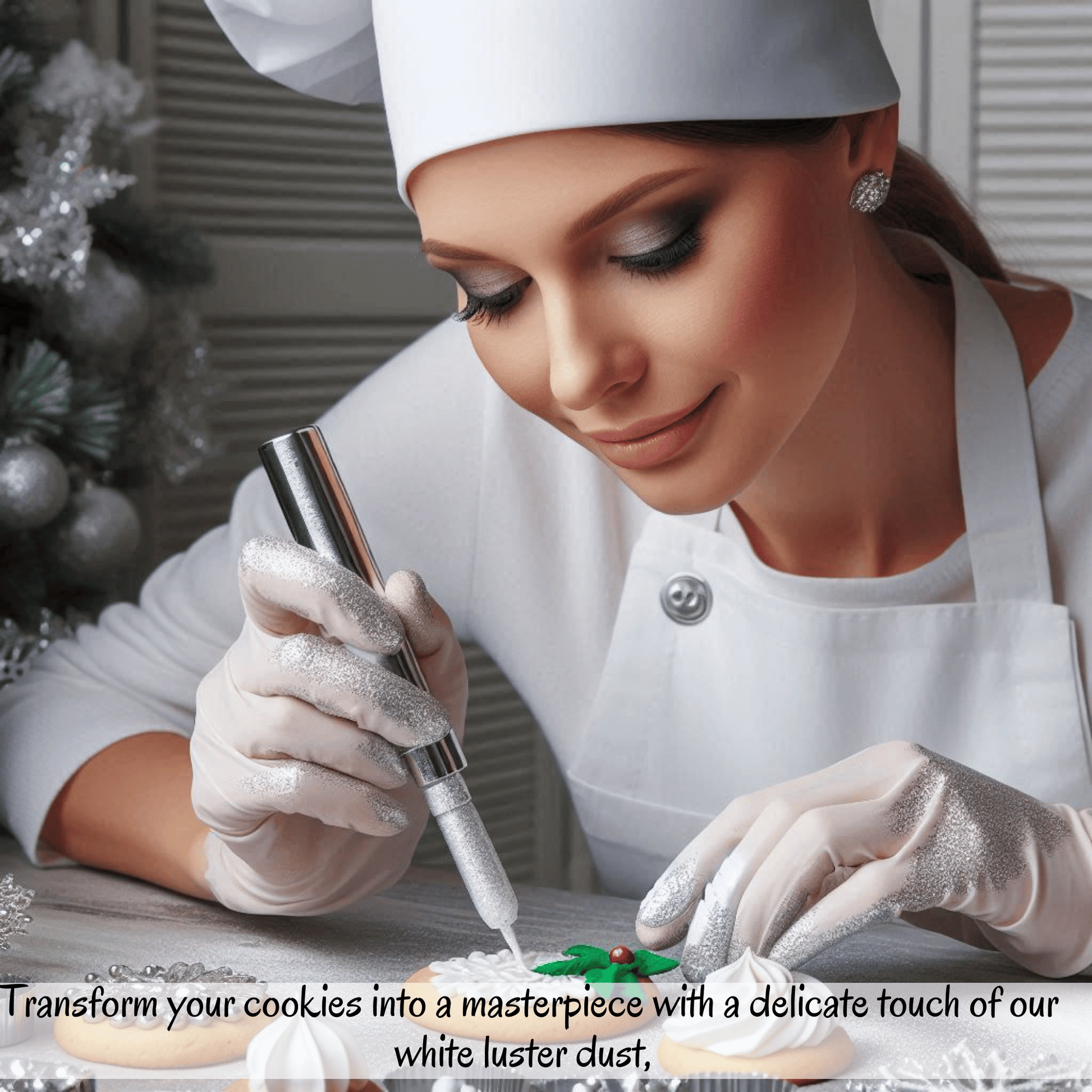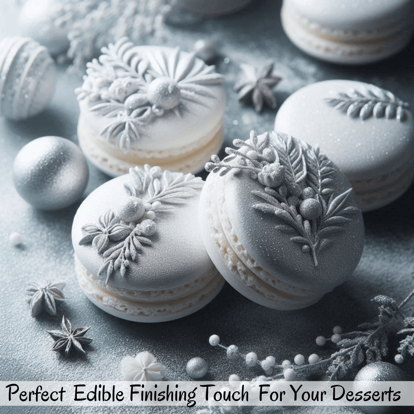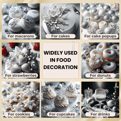 A premium pearlescent powder that creates stunning metallic and pearlized finishes on cakes, chocolates, and sugar decorations.