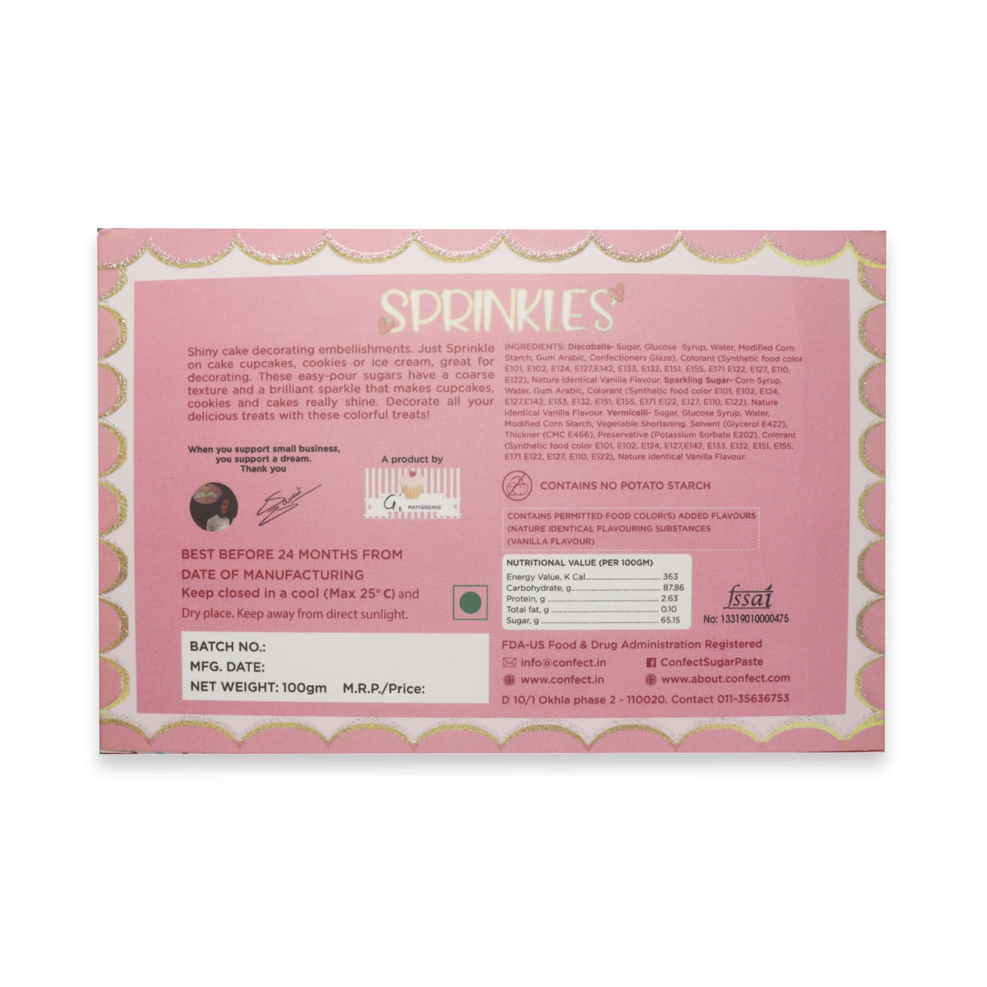 Perfect for decorating birthday cakes, festive treats, and everyday bakes. These 100% vegetarian sprinkles add crunch, color, and sparkle with a mix of textures – from metallic shine to sugary crunch.