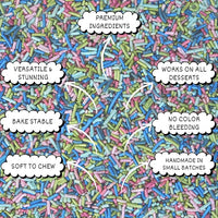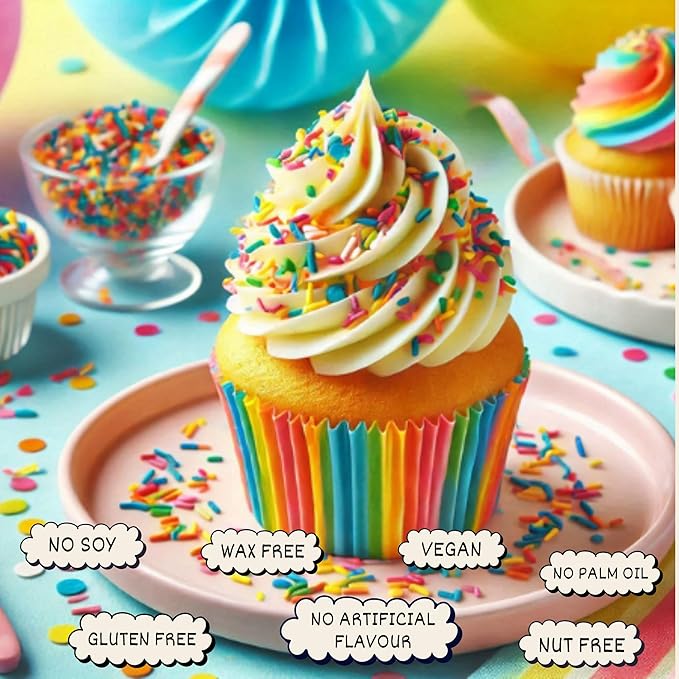 Perfect for decorating birthday cakes, festive treats, and everyday bakes. These 100% vegetarian sprinkles add crunch, color, and sparkle with a mix of textures – from metallic shine to sugary crunch.