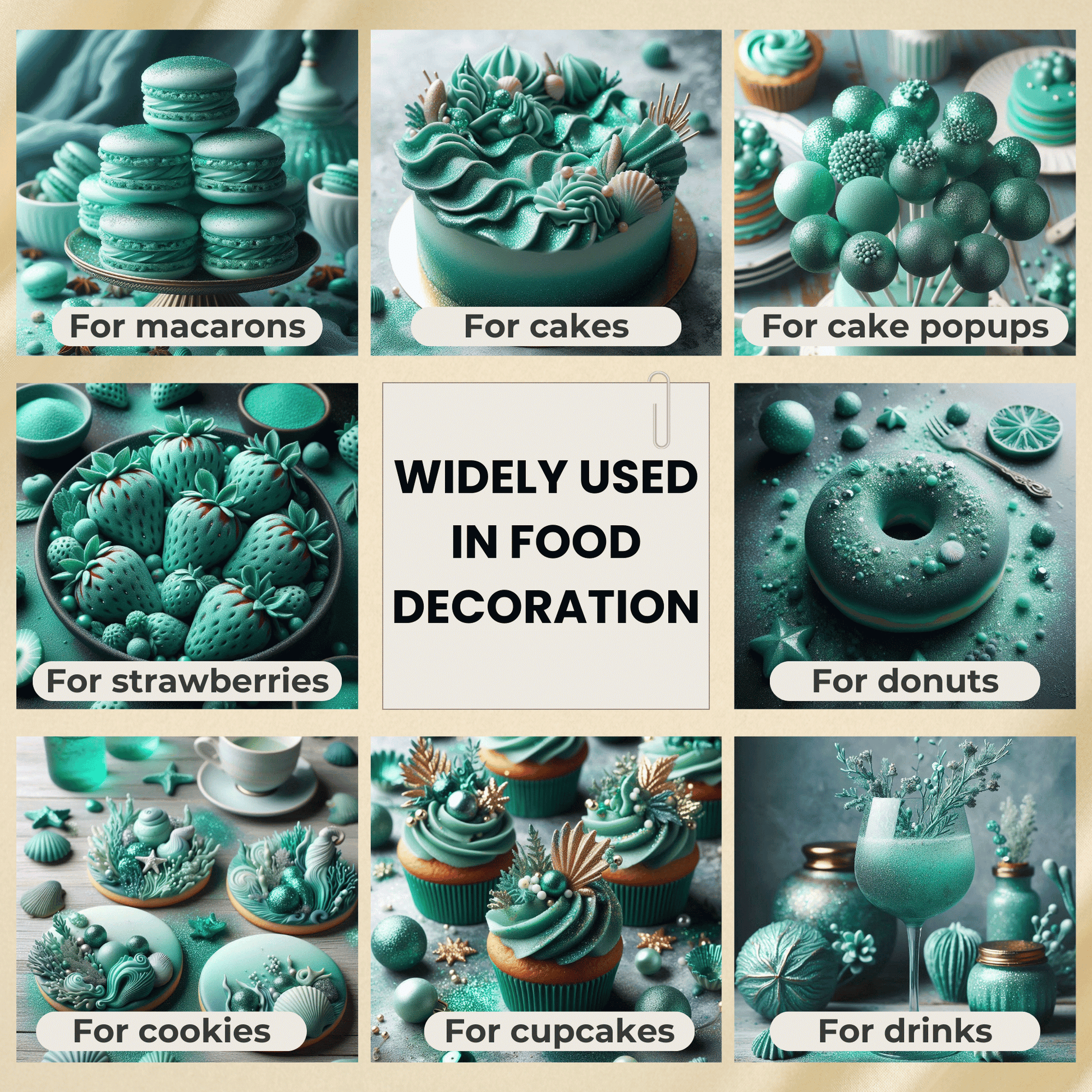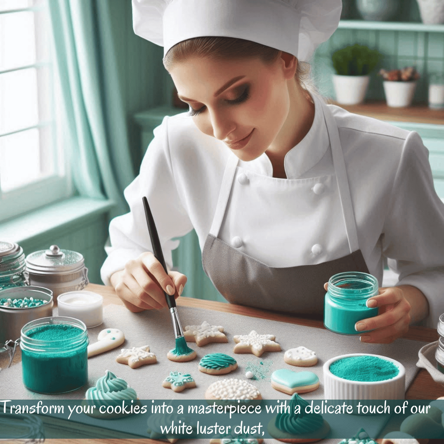 A premium pearlescent powder that creates stunning metallic and pearlized finishes on cakes, chocolates, and sugar decorations.